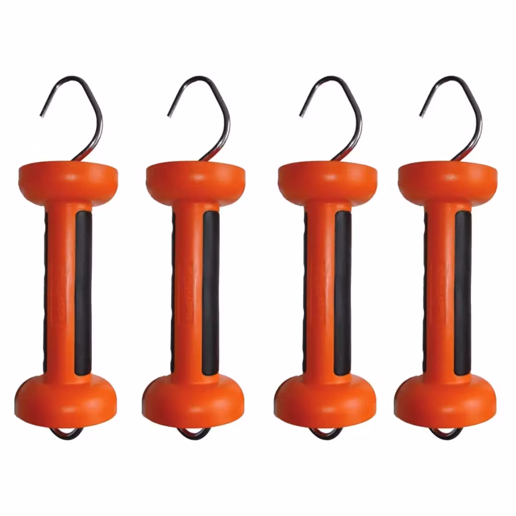 Håndtaget er fremstillet med stærke materialer og rustfri ståldele for lang levetid og pålidelig funktion. Leveres i praktisk 4 pak og egner sig til både permanente og flytbare hegnsløsninger.