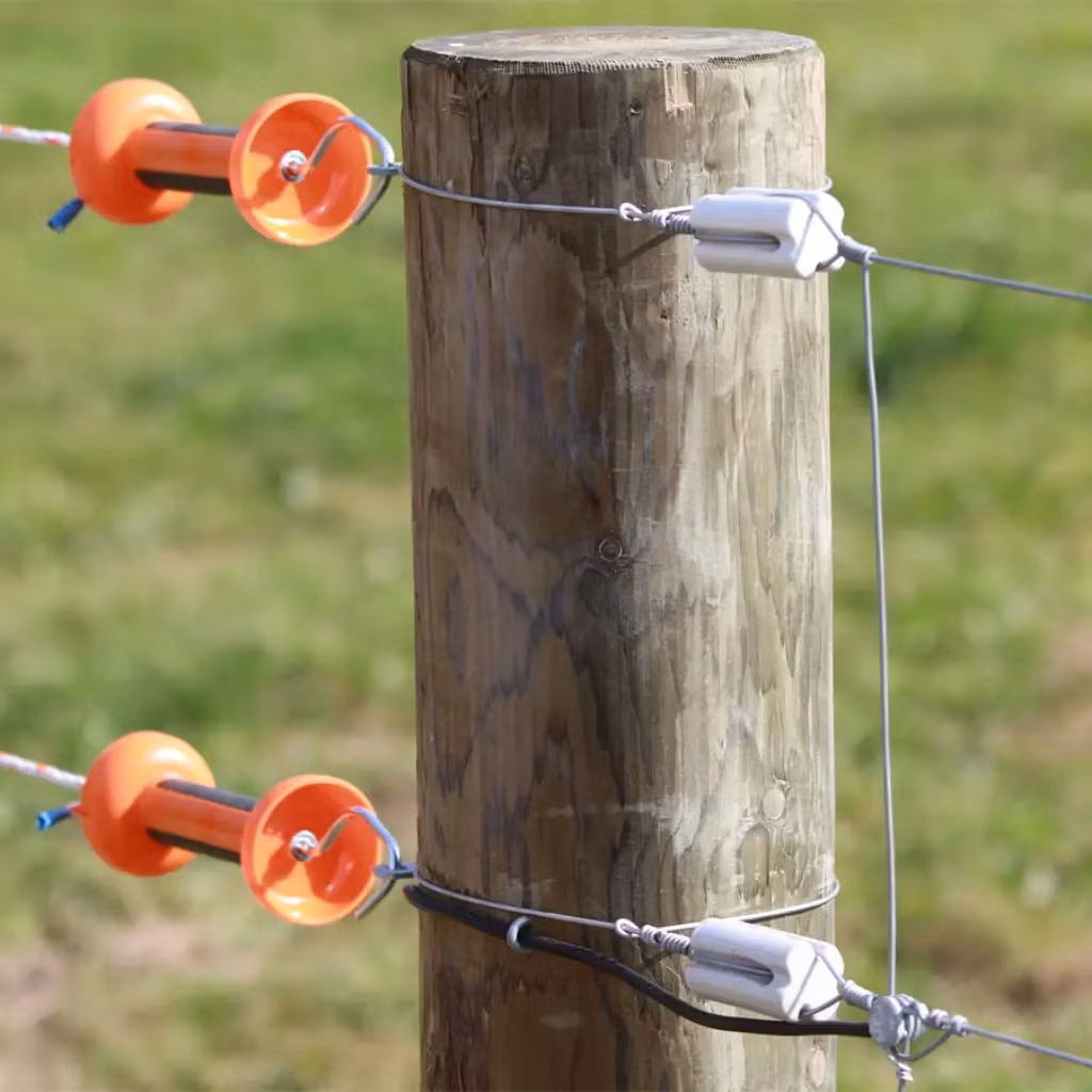 Ergonomisk lågehåndtag med blødt gummigreb og høj synlighed. Velegnet til elhegn med tråd eller reb. Leveres i praktisk 4 pak.