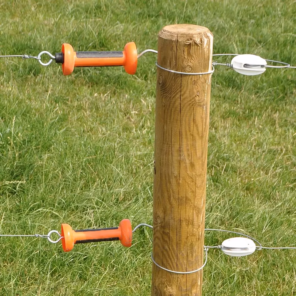 Den klare orange farve gør lågehåndtaget meget synligt i marken og reducerer risikoen for utilsigtet berøring. Et ideelt valg til både permanente og flytbare hegn, hvor komfort, synlighed og holdbarhed er afgørende.