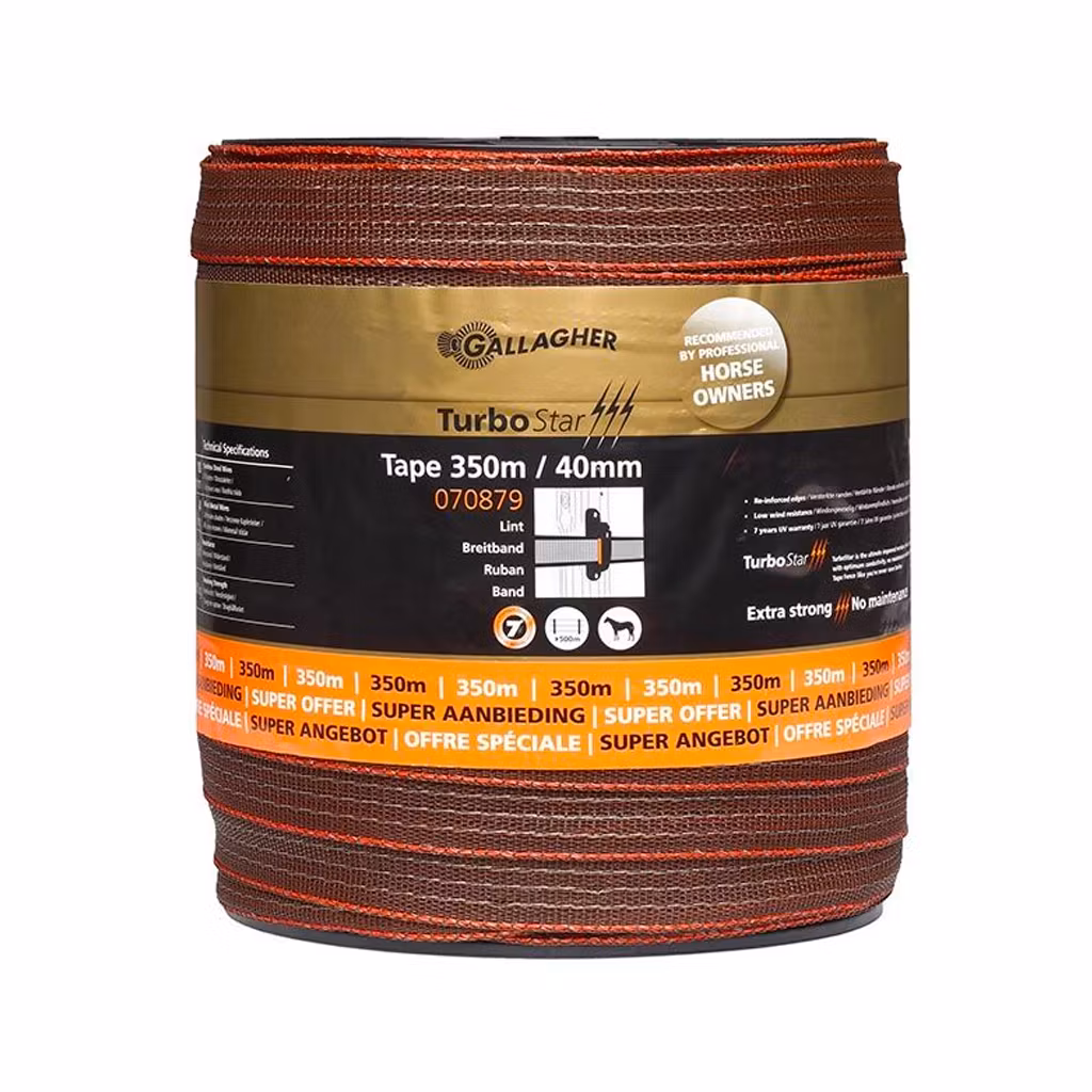 TurboStar Premium-band från Gallagher är ett extra starkt elband som även har det lägsta motståndet som finns på marknaden idag. Det har 40 gånger bättre ledningsförmåga än ett vanligt band vilket resulterar i mer kraft på ditt häststängsel.