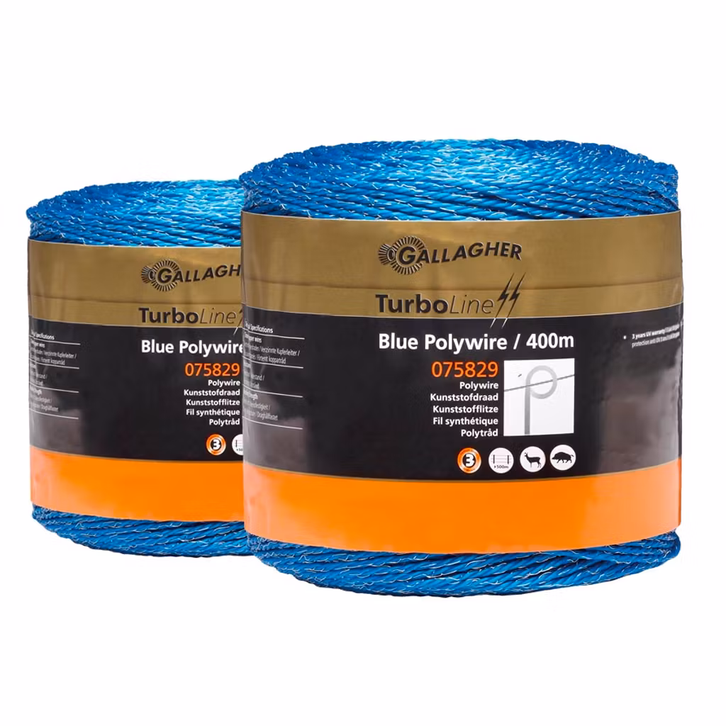 Gallagher TurboLine Polywire i blå er udviklet til at beskytte dine marker og dyr mod vildsvin, ulve og andet vildt. Forskning viser, at vildsvin har svært ved at se farver, men opfatter netop blå tydeligst. Denne 2-pak (2x400 m) giver dig en meget ledende tråd med høj synlighed og pålidelighed. De 3 fortinnede kobbertråde sikrer maksimal strømføring, mens den blå farve giver ekstra beskyttelse mod vildt.