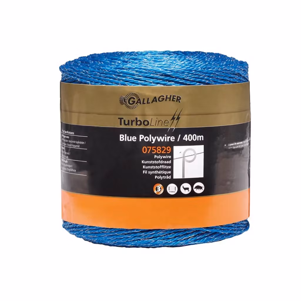 Gallagher TurboLine Polywire i blå er specielt udviklet til at holde vilde dyr som vildsvin, rovdyr og andet vildt ude. Forskning viser, at vildsvin ser blå bedst – derfor giver denne tråd en optimal barriere. Med 3 fortentede kobbertråde leverer den høj ledningsevne og Turbo-effekt. Den klare blå farve giver fremragende synlighed og sikkerhed for dine marker, afgrøder og husdyr.