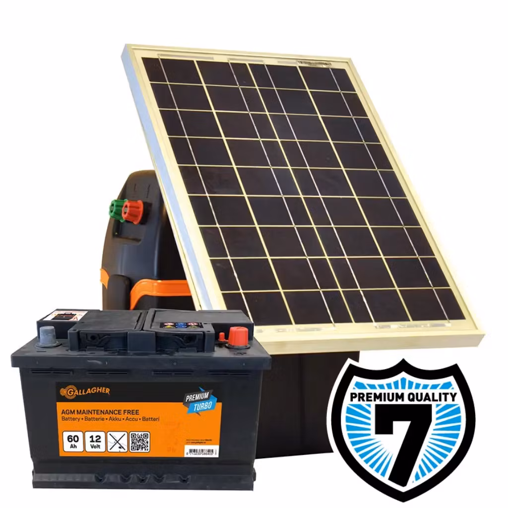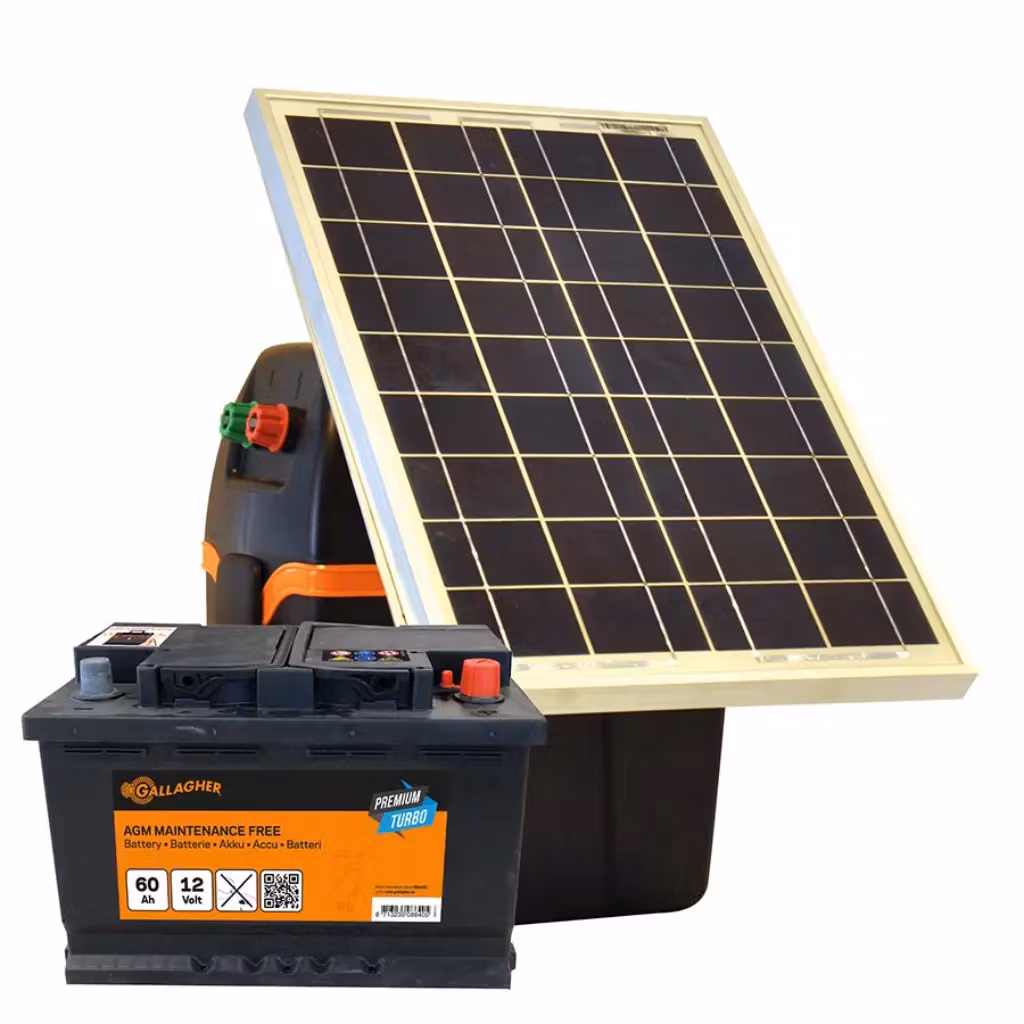 Den perfekta solkombinationen! Innehåller Gallaghers Stängselaggregat B200, Premium Batteri 60Ah och 20W Solpanel. Miljövänligt, kompakt och underhållsfritt.