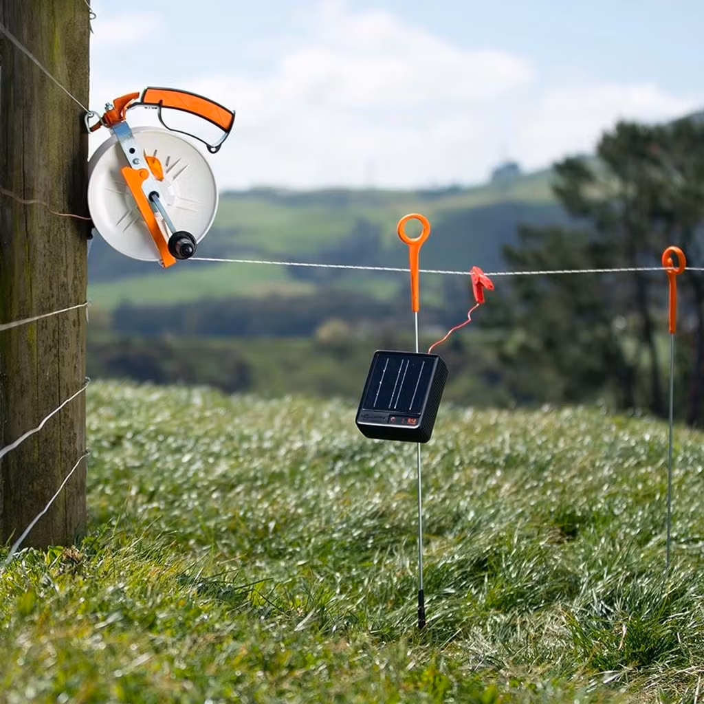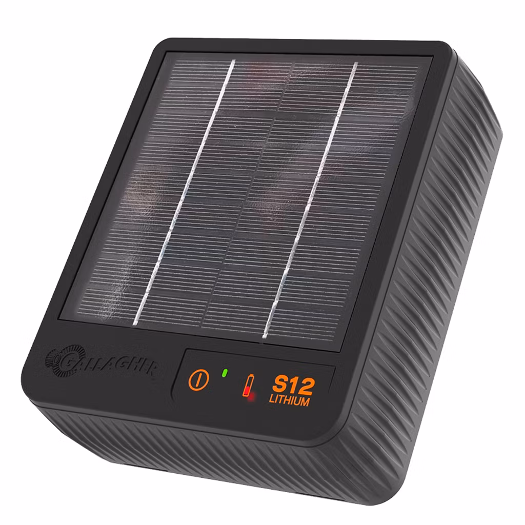 Gallagher S12 Solcellsaggregat för elstängsel är kraftfullt, kompakt och pålitligt. Lämpligt för bl.a. stripbetning och andra flyttbara stängsel. Lätt att transportera och installera. Montera S12 på en fjäderstålstolpe (Köp till) så är jordningen fixad direkt. Passar stängsel upp till 1,5 km.