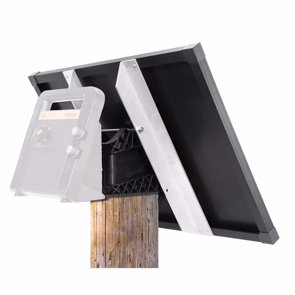 Detta solpanelspaket erbjuder en lösning att ställa om Gallaghers MBS-aggregat till ett soldrivet elstängselaggregat. Tack vare den smart utformade hållaren, kan det monteras på en trä- eller stålstolpe. Paketet innehåller en 40 W-panel med monteringssystem, en robust hållare för montering av både solpanelen och aggregatet, anslutningsmaterial och skruvar för montering. Garanti: 2 År