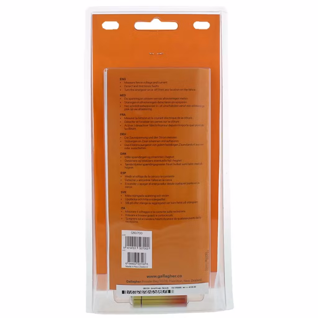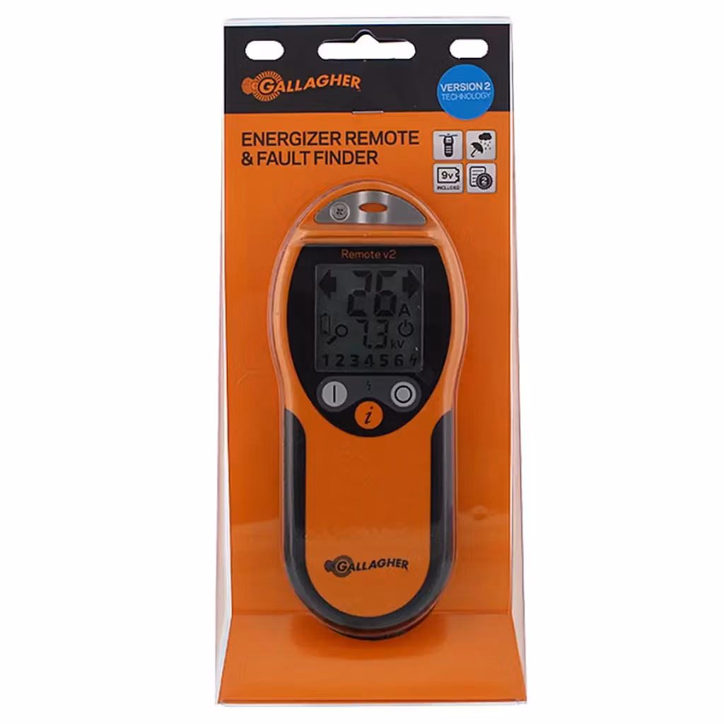 Fjärrkontroll till Gallagher iSerie för att sätta igång eller stänga av aggregatet var som helst längs stängsellinjen. Integrerad felfinnarfunktion som leder dig till felet i stängslet. ‘Fråga’ funktion visar aggregatets bildskärm på fjärrkontrollen var som helst på stängslet. Fungerar med alla elstängselaggregat i Series. Slå på och av aggregatet var som helst längs stängslet.