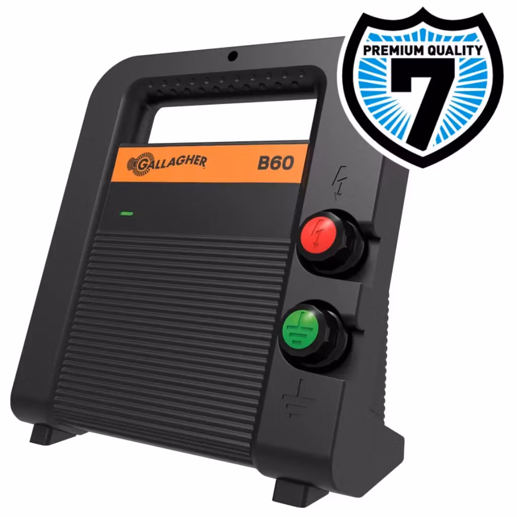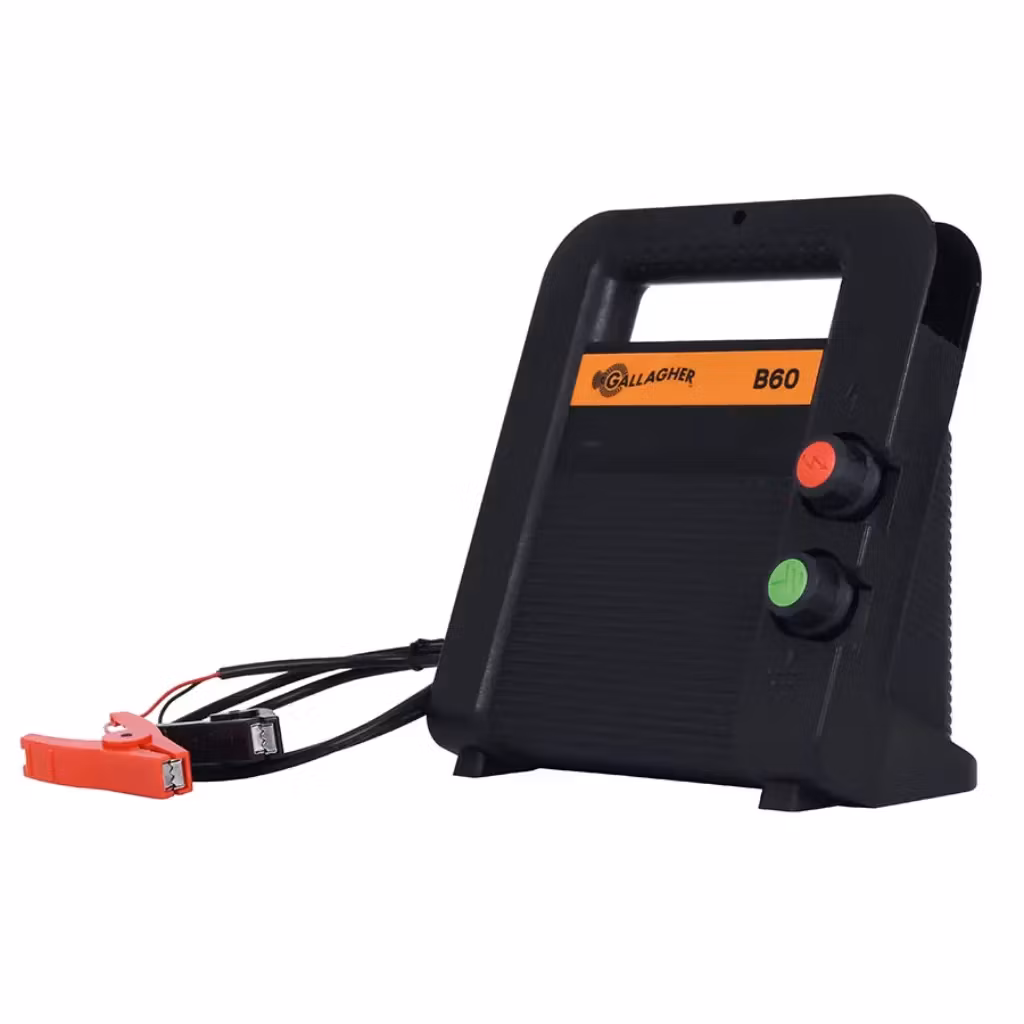 Gallagher B60 är ingångsmodellen för 12 V batteriaggregat. Batteriaggregatet passar flertrådiga stängsel upp till 8 km eller 3 hektar. Kompakt och bärbar.