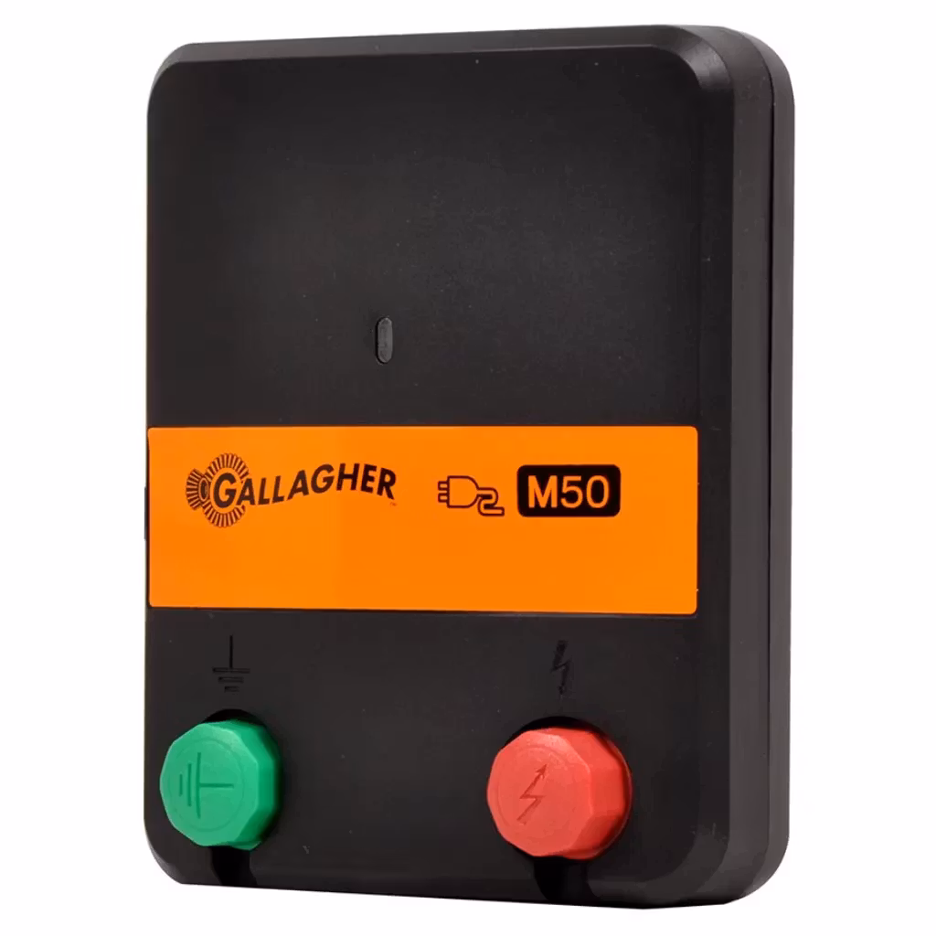 Gallagher M50 är ett användarvänligt 230V aggregat för kortare inhägnader, speciellt lämpligt för husdjur. Enkelt att montera, installera och använda.