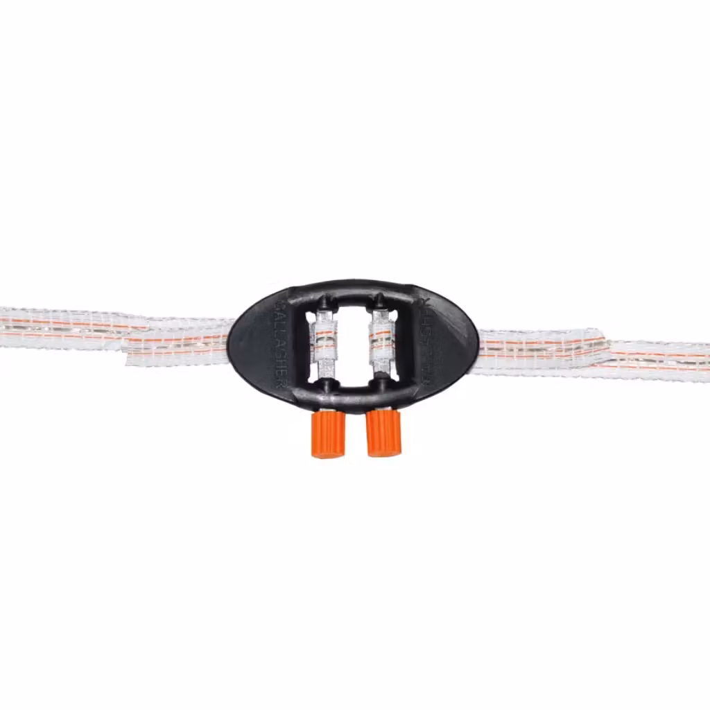 Gallagher båndsamler 12,5/20 mm er udviklet til sikker sammenkobling og opstramning af elbånd med en bredde på 12,5 mm og 20 mm. Den gennemprøvede rygsækspænde-princip gør monteringen hurtig og enkel, samtidig med at båndet holdes stabilt og korrekt spændt.