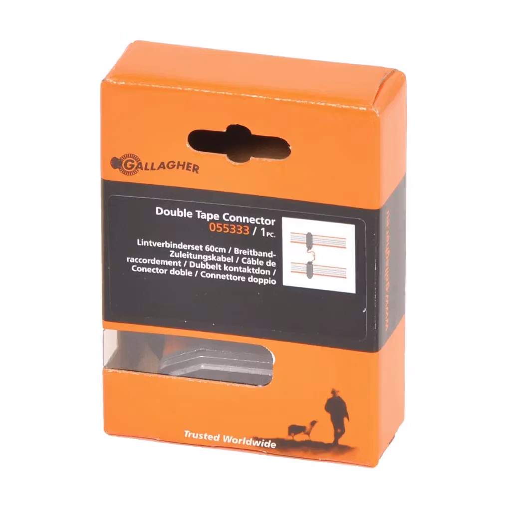 Den dobbelte kobling øger fleksibiliteten i hegnsopsætningen og er ideel, når der ønskes ensartet strømføring på tværs af flere båndrækker.